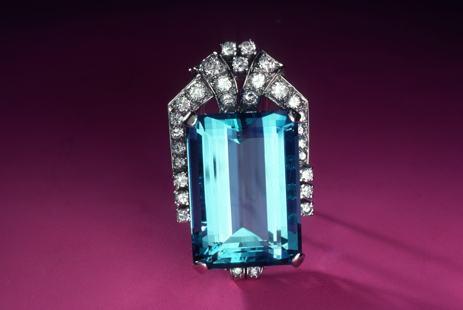 A pin can hold a large aquamarine, like this 50-ct piece, more comfortably than a ring. Photo © Joel E. Arem, PhD, FGA. Used with permission.