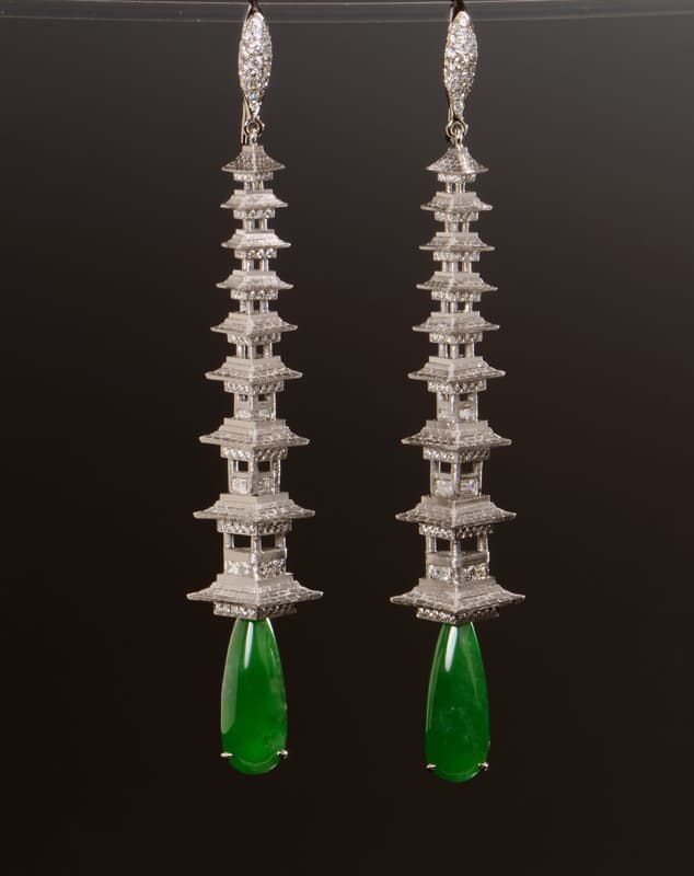 "Nine Tower" earrings with imperial jadeite and diamonds. © Tsai An Ho Art Jewelry. Used with permission.