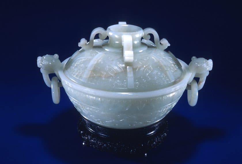 White nephrite bowl with cover, Mannheim Galleries, Stanley Nott Collection. Photo © Joel E. Arem, PhD, FGA. Used with permission.