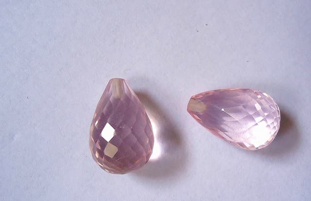 "Rose Quartz Teardrops," briolette cut, by Mauro Cateb is licensed under CC By 2.0