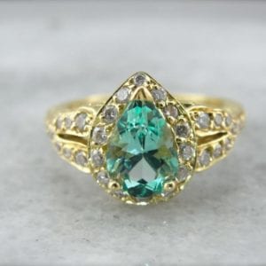 Light in tone and bluish green, this pear-shaped emerald has great color and great sparkle. © Market Square Jewelers. Used with permission.