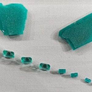 Growth patterns are clearly visible in these lab-made emerald specimens. Photo by Newermore ares. Licensed under CC By-SA 4.0.