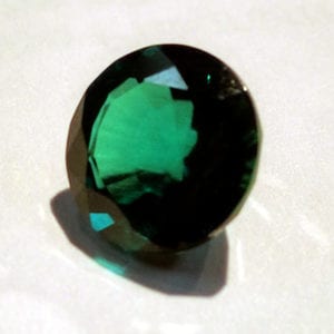 Your first indication of a lab-made stone will likely be a very clean appearance, like this 9 mm round. Photo by Grendelkhan. Licensed under CC By-SA…