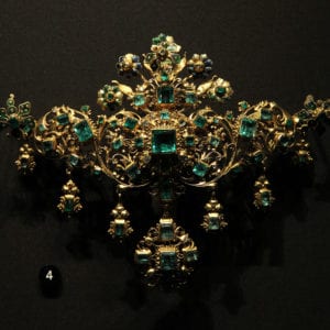 Colombian emeralds made their way into this 18th-century bodice ornament. On display at the Victoria and Albert Museum, London, UK. Photo by Vassil.…