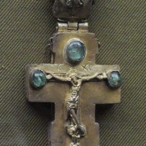 Cross-reliquary, silver and emeralds, 16-17th centuries CE, from the collection of the Tretyakov Gallery, Moscow. Photo: Wikipedia/Shakko.…