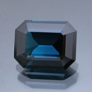 This is a dark blue tourmaline from Afghanistan that has a simplified emerald cut pavillion and a standard emerald cut crown.