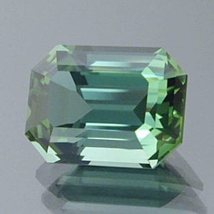 This bi-color tourmaline is mostly green with a bit of blue in the end (left end in picture).