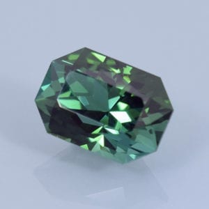 This sapphire has a nice minty blue-green color in daylight and shifts to more of a yellowish mint green under most indoor lighting. Color: Minty…