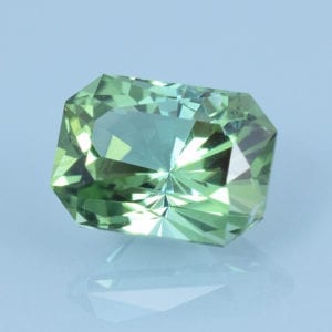 A very pretty Congo tourmaline that sometimes shows secondary blue-green tones. Color: Bright Green, Treatment: None Known, Cut: Custom Radiant…