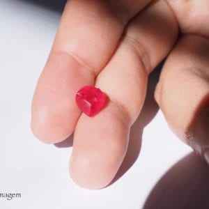 “Jedi” spinels from the Man Sin mine (Mogok, Myanmar), on a broker’s hand in the Umbrella Market. Photos by Jeffery Bergman,…