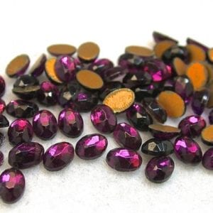 These vintage, faceted, purple glass rhinestones with gold foil backings resemble amethysts. Photo © Joel E. Arem, PhD, FGA. Used with permission.…