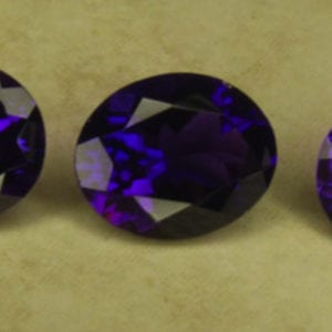 These three amethysts from Four Peaks, Arizona have a blue component to their striking, deep purple color. 7.0-ctw, 10 x 8mm. © All That Glitters.…