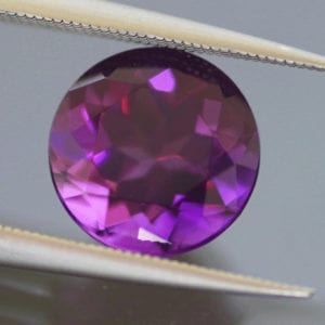 This 2.55-ct amethyst from Zambia possesses the coveted “Siberian” color. Round brilliant cut, 9 mm. © The Gem Trader. Used with permission.…