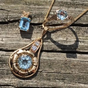 Antique aquamarine pendants and ring. © The Parisian Flea of Hampden. Used with permission.