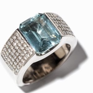 Like many gems, aquamarines show conchoidal, “shell-like” fractures when broken or chipped. The oval-shaped aquamarine in this Tiffany…