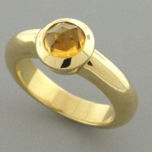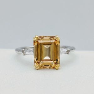 Mixed metal is another popular option. In this retro-style ring, yellow prongs frame the citrine center stone on a silver band. Photo courtesy…