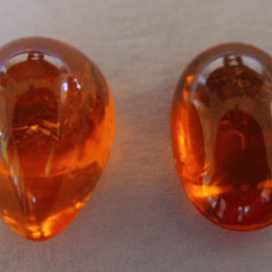 Spessartite cabochons, pear (10.64 cts) and oval (5.98 cts), Nigeria. © All That Glitters. Used with permission.