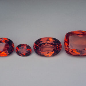 Spessartites: Brazil (ca 4, 2, 2, 16). Photo © Joel E. Arem, PhD, FGA. Used with permission.