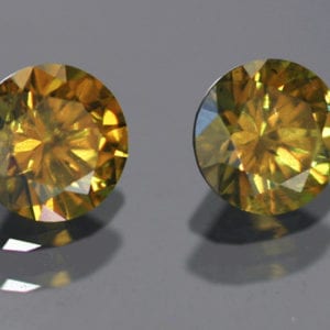 Matched topazolite garnets, 1.19 ctw, 5.1 mm, round brilliant cuts, Russia. © The Gem Trader. Used with permission.