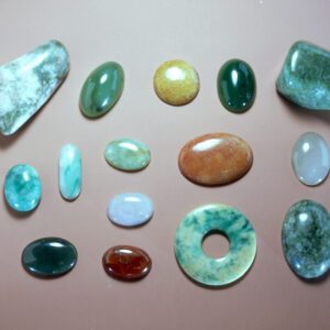 Jade pieces in various colors. Photo © Joel E. Arem, PhD, FGA. Used with permission.
