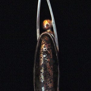 “Story in History,” mohawkite, silver, and bronze pendant. © Lauren Tripp, photo and jewelry. Used with permission.