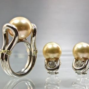 This set of golden pearl jewelry accentuates the round shape. © J. Grahl Design. Used with permission.