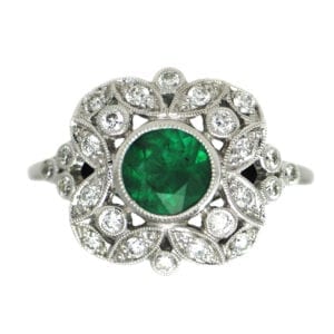 This emerald engagement ring is a vintage piece and still looking great. © Pavé Fine Jewelry. Used with permission.