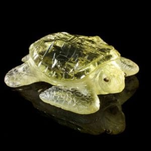 A 122.33-ct turtle figurine, carved from a single piece of heliodor from Ukraine by Hans Ulrich Pauly. (The eyes are black onyx wrapped in 18k gold).…