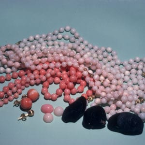 Coral jewelry, Mediterranean Sea (reddish beads around 5 mm in size). Photo © Joel E. Arem, PhD, FGA. Used with permission.