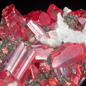 Realgar (arsenic sulfide), the bright red gem material in this photo, is highly toxic and has historically been used as a poison. Photo by Géry…