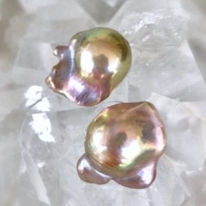 Two irregular baroque pearls with beautiful luster and iridescence. © Urth Kandi Jewelry. Used with permission.