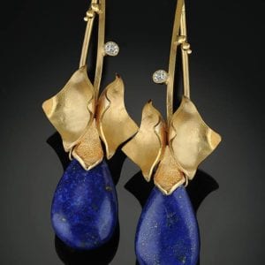 18K gold earrings featuring fine lapis lazuli and diamonds. © Rosario Garcia Designs. Used with permission.