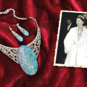 The famous “Andamooka Opal” on display, with a picture of Queen Elizabeth II when she wore it. Image © Altmann and Cherny. Used with permission.…