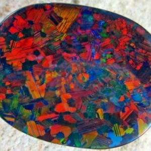 The Chinese character for “long life” shows in this opal’s play of color. © Opal Auctions. Used with permission.