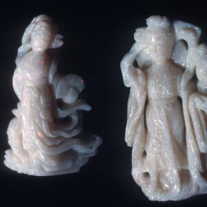 Carved white opals, around 2 cts and 1½ inches. Photo © Joel E. Arem, PhD, FGA. Used with permission.