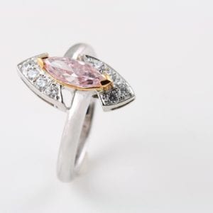 Set in a unique design, this marquise-cut fancy pink diamond has a pure hue and a lot of character. © Aharoni Jewellery. Used with permission.…