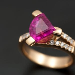 Hot pink colors are a popular option for this gemstone. © Aharoni Jewellery. Used with permission.